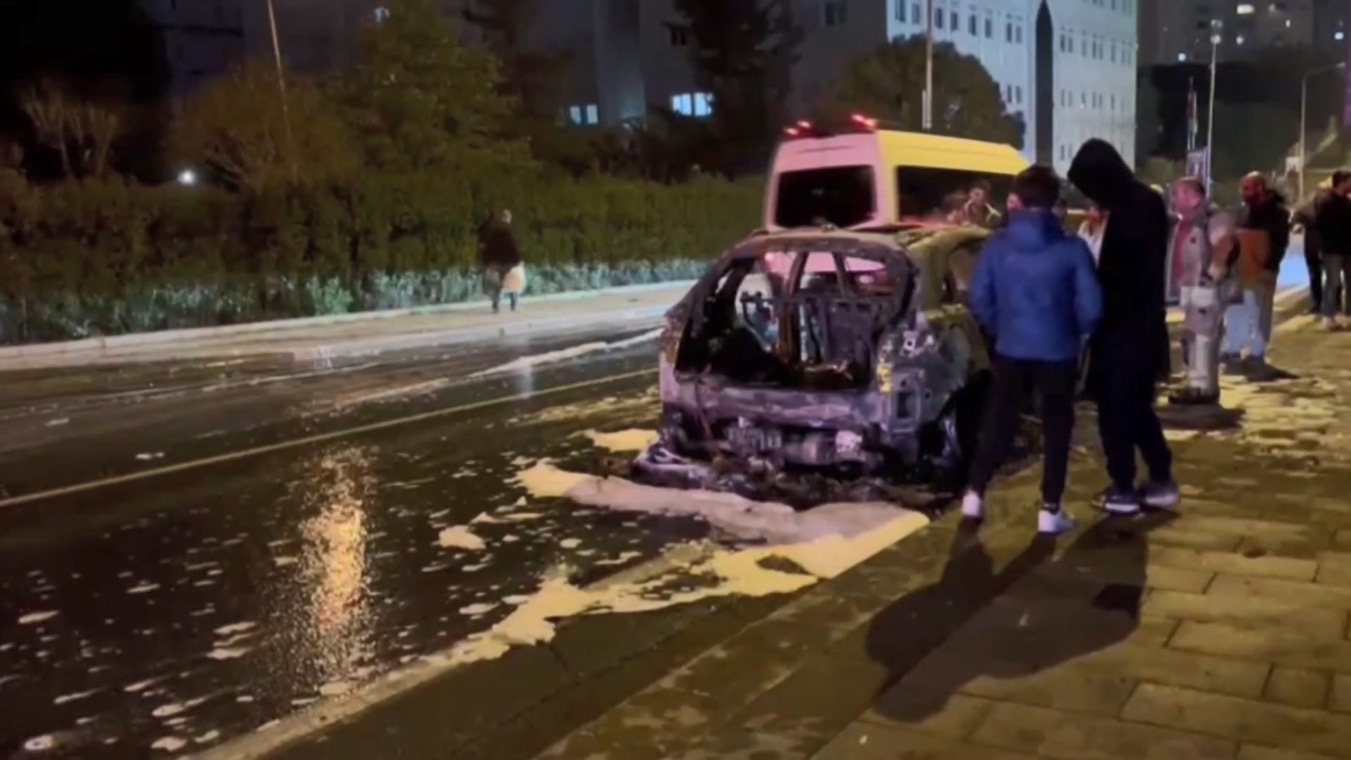 İhbar üzerine adrese itfaiye ve polis ekipleri sevk edildi. Polis cadde üzerinde güvenlik şeridi oluştururken, itfaiye ekipleri yoğun müdahaleyle alevleri kontrol altına aldı. Yangında can kaybı ya da yaralanma yaşanmazken, araç kullanılamaz hale geldi.