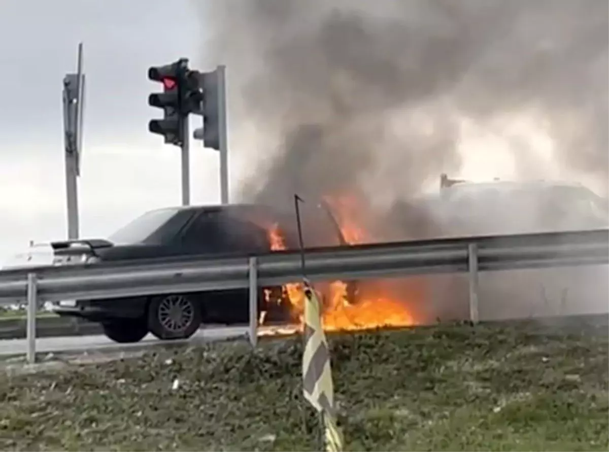 Tekirdağ Kapaklı’da Seyir Halindeki Otomobil Alev Aldı